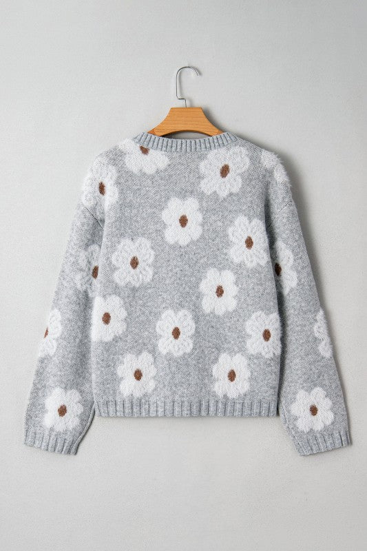 Floral V-Neck Baggy Sweater